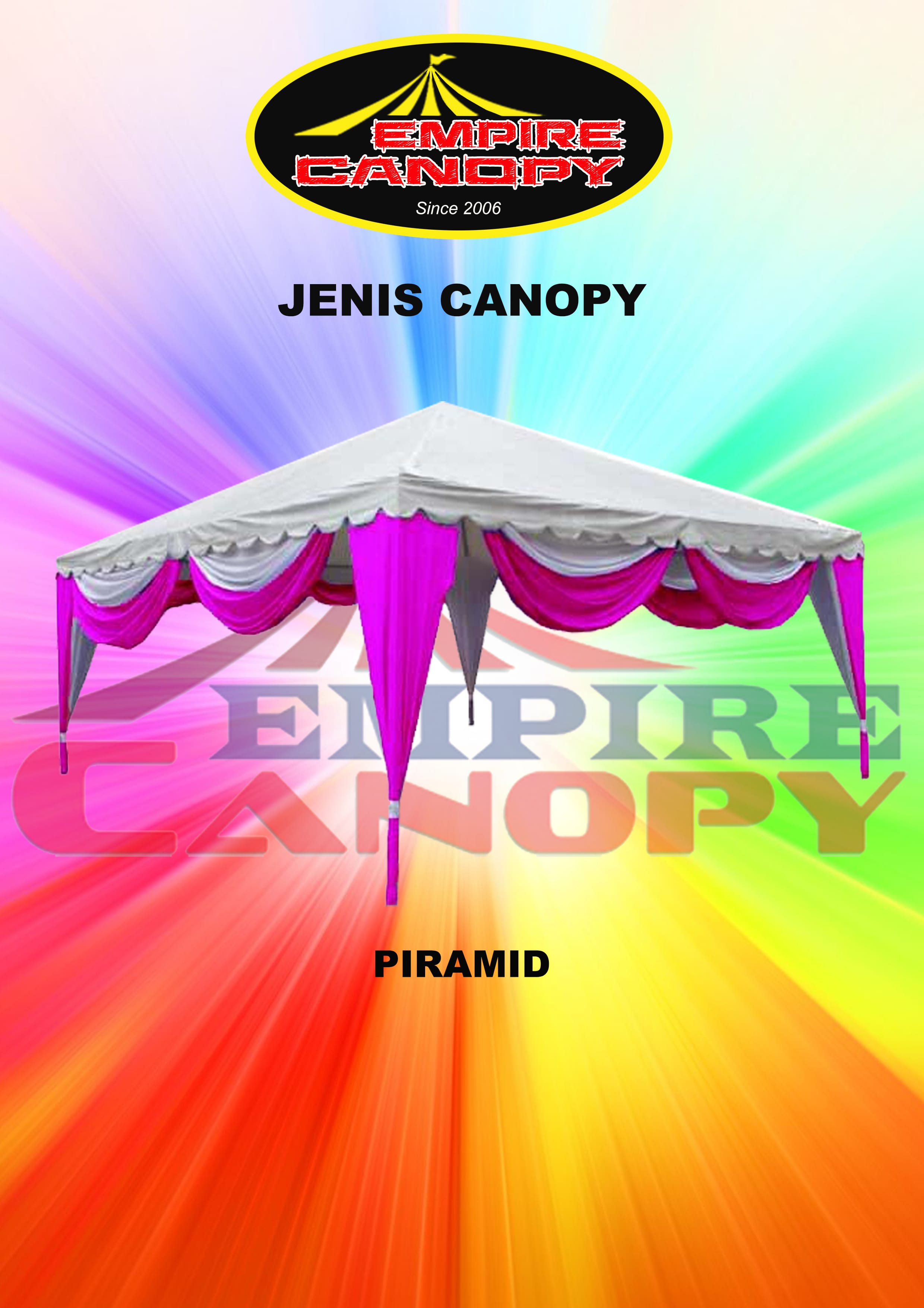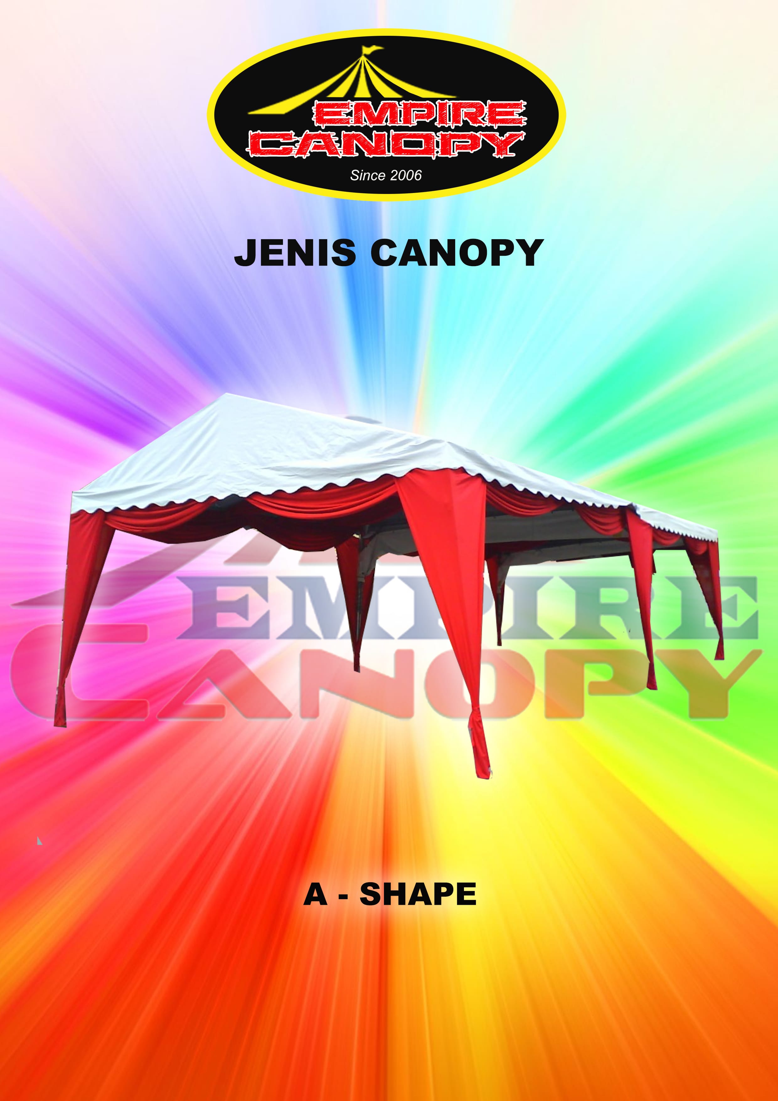 Selain canvas berukuran standard Empire Canopy berkebolehan untuk mengeluarkan canvas mengikut kehendak pelanggan dengan pelbagai warna dan berserta nama dan logo syarikat.